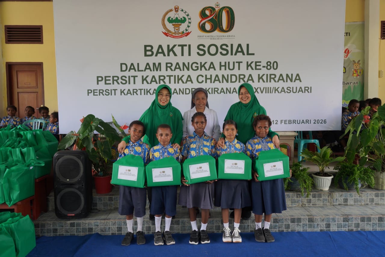 MANOKWARI, BUSERJATIM.COM GROUP (14/02/26) – Dalam rangka memperingati Hari Ulang Tahun ke-80 Persit Kartika Chandra Kirana, Persit KCK PD XVIII/Kasuari menggelar bakti sosial di Panti Asuhan Santa Maria Yayasan Amal Dharma Bakti, SP 8 Masni, Kabupaten Manokwari, (12/2).