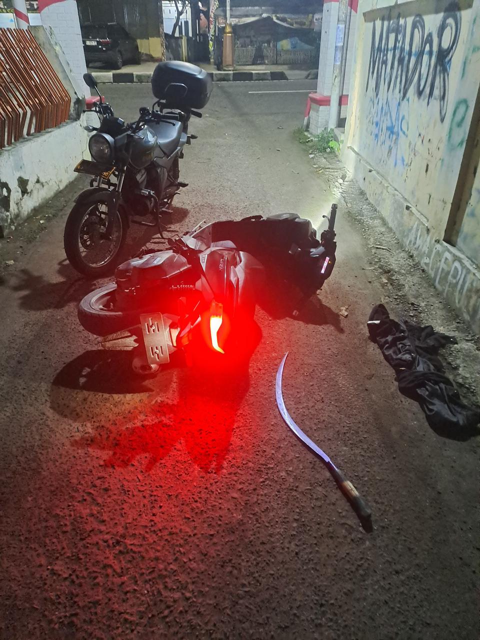 Hasilnya, petugas berhasil mengamankan satu unit sepeda motor serta satu bilah senjata tajam (sajam) yang diduga kuat milik salah satu pelaku yang melarikan diri saat melihat kedatangan petugas.