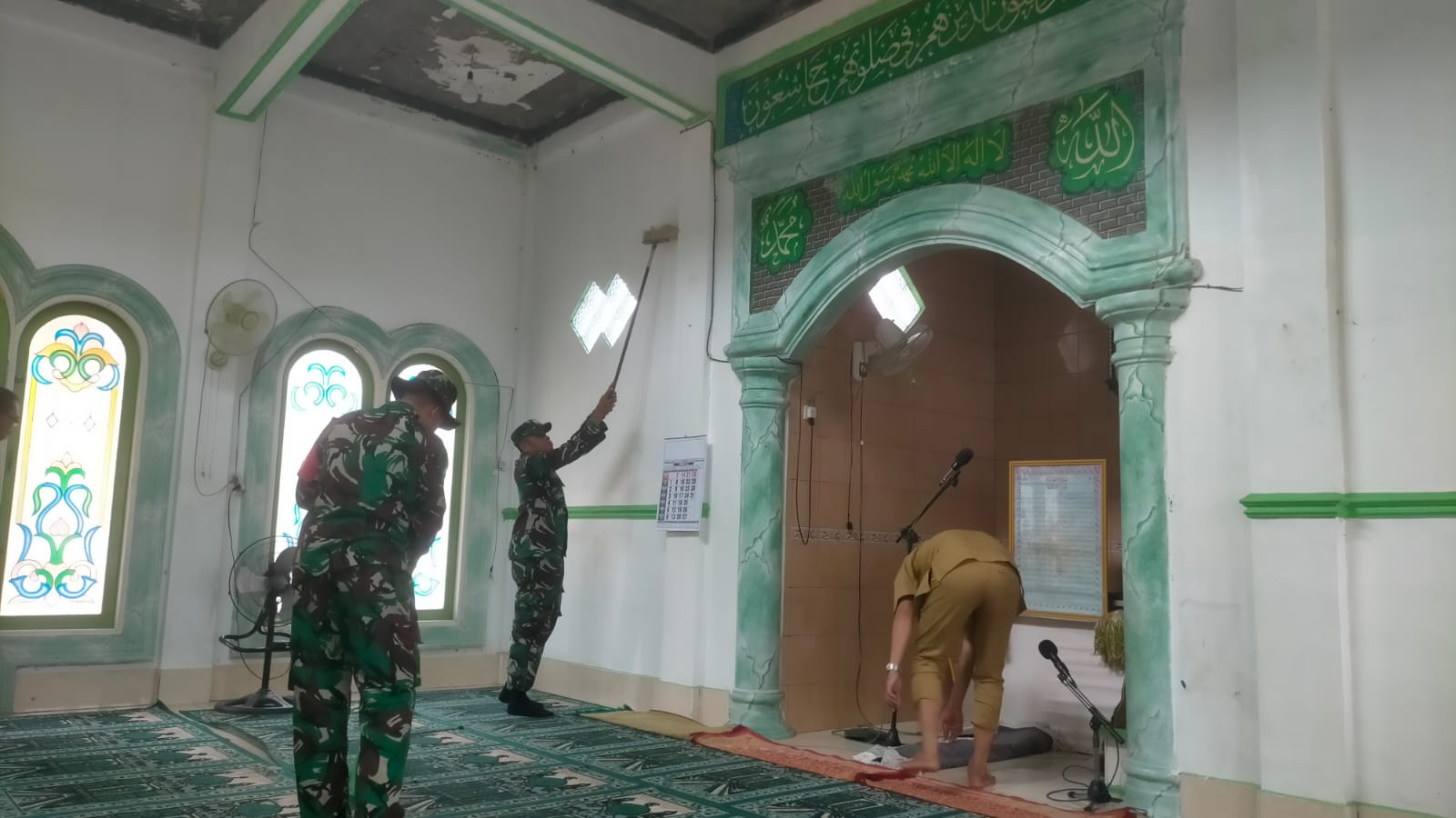 Kegiatan gotong royong tersebut menyasar seluruh bagian rumah ibadah, baik di dalam maupun di luar bangunan. Warga bersama Babinsa tampak kompak menyapu dan mengepel lantai, membersihkan kaca jendela, merapikan tempat wudhu, hingga menata lingkungan sekitar mushola agar terlihat bersih dan nyaman.