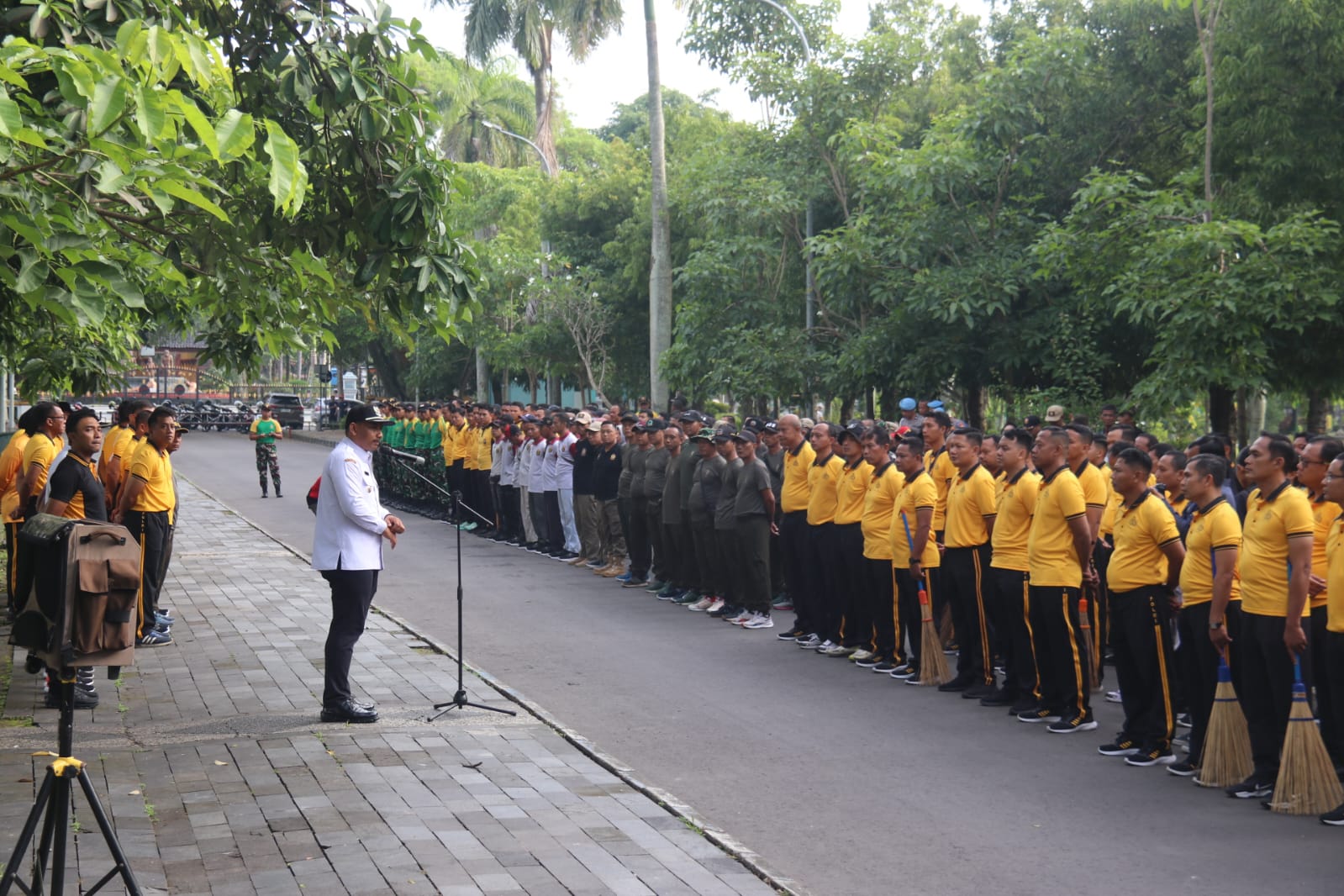 NGAWI, BUSERJATIM.COM GROUP – Dalam rangka Gerakan Nasional (Aman, Sehat, Resik, Indah), telah dilaksanakan apel bersama dilanjutkan pembersihan Kawasan