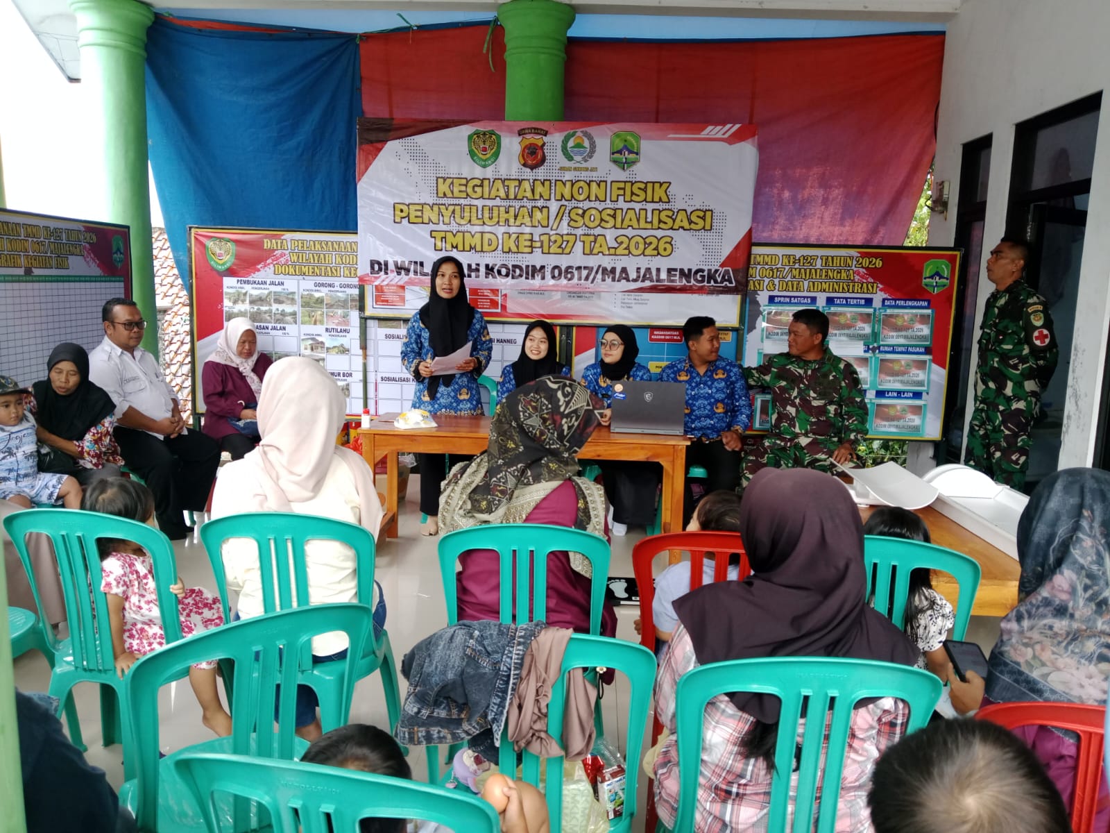 Kegiatan tersebut menghadirkan penyuluh dari Puskesmas Sindangwangi yang didampingi Poskes Kodim 0617/Majalengka serta personel Koramil 1709/Rajagaluh. Penyuluhan ini bertujuan meningkatkan pemahaman para ibu hamil dan orang tua balita mengenai pentingnya asupan gizi seimbang guna mencegah stunting sejak dini.