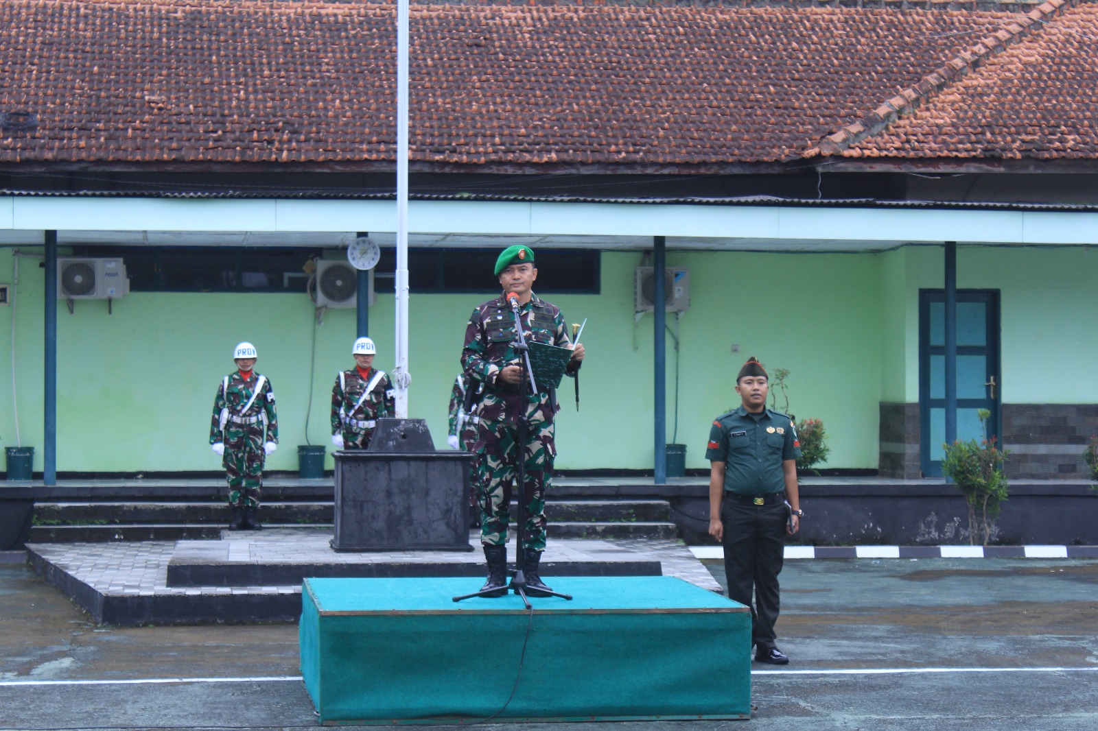 Turut bertugas dalam upacara tersebut, Pengucap Sapta Marga Sertu Asep Ruhiyat, Pengucap Sumpah Prajurit Kopka Mahmud, Pembaca Pembukaan UUD 1945 Serka Asep Saefudin, serta perwakilan PNS Rasita. Peserta upacara terdiri dari Kelompok Perwira, Peleton bersenjata gabungan Koramil, gabungan Kodim, hingga Peleton PNS Kodim dan Koramil.