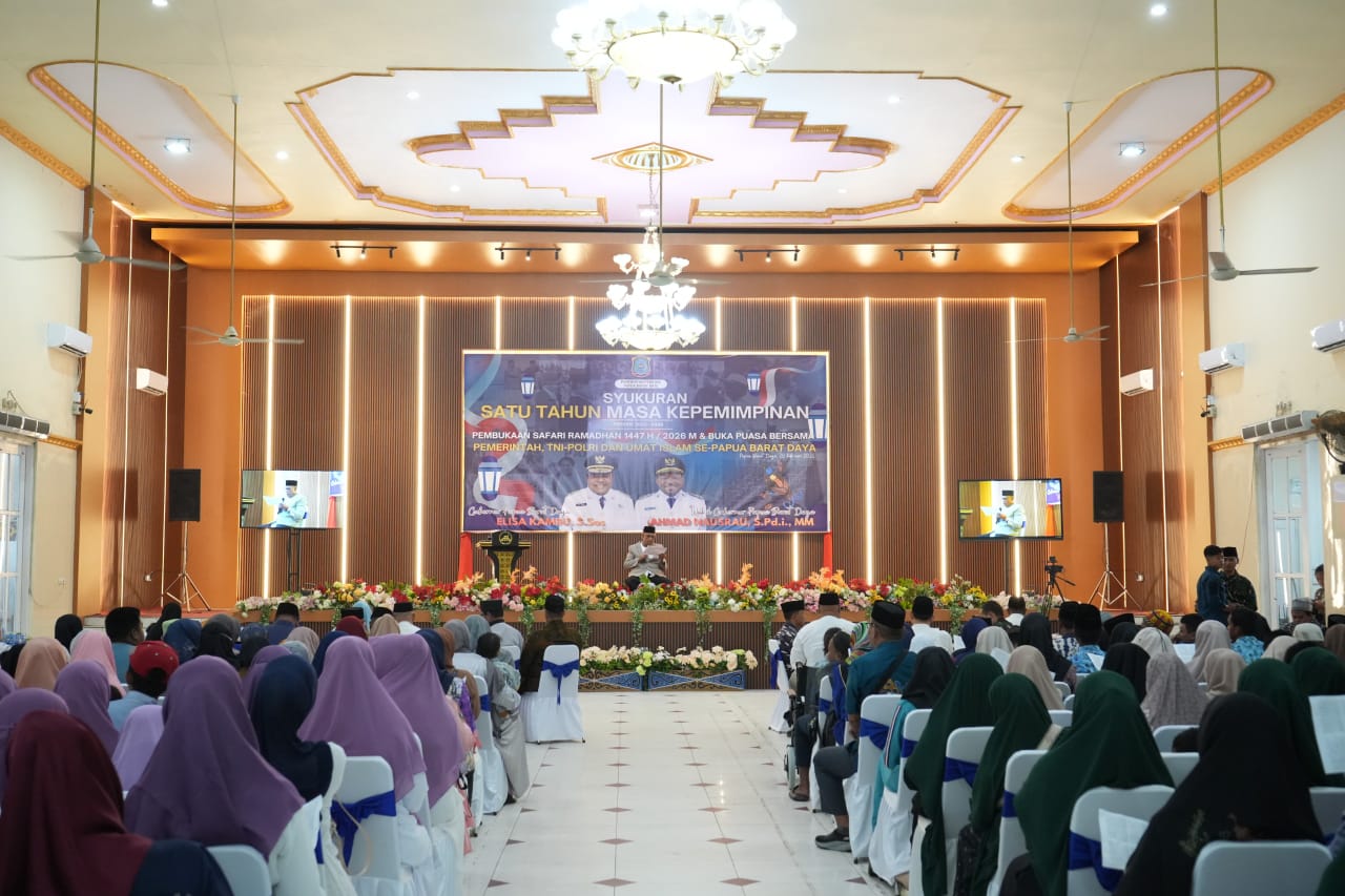 Dalam sambutannya, Gubernur Papua Barat Daya menyampaikan rasa syukur atas capaian pembangunan selama satu tahun kepemimpinan, sekaligus mengajak seluruh elemen masyarakat untuk terus memperkuat kolaborasi dalam mewujudkan pembangunan yang inklusif dan berkeadilan. Momentum Ramadhan juga dijadikan sarana mempererat silaturahmi serta meningkatkan kepedulian sosial di tengah masyarakat.