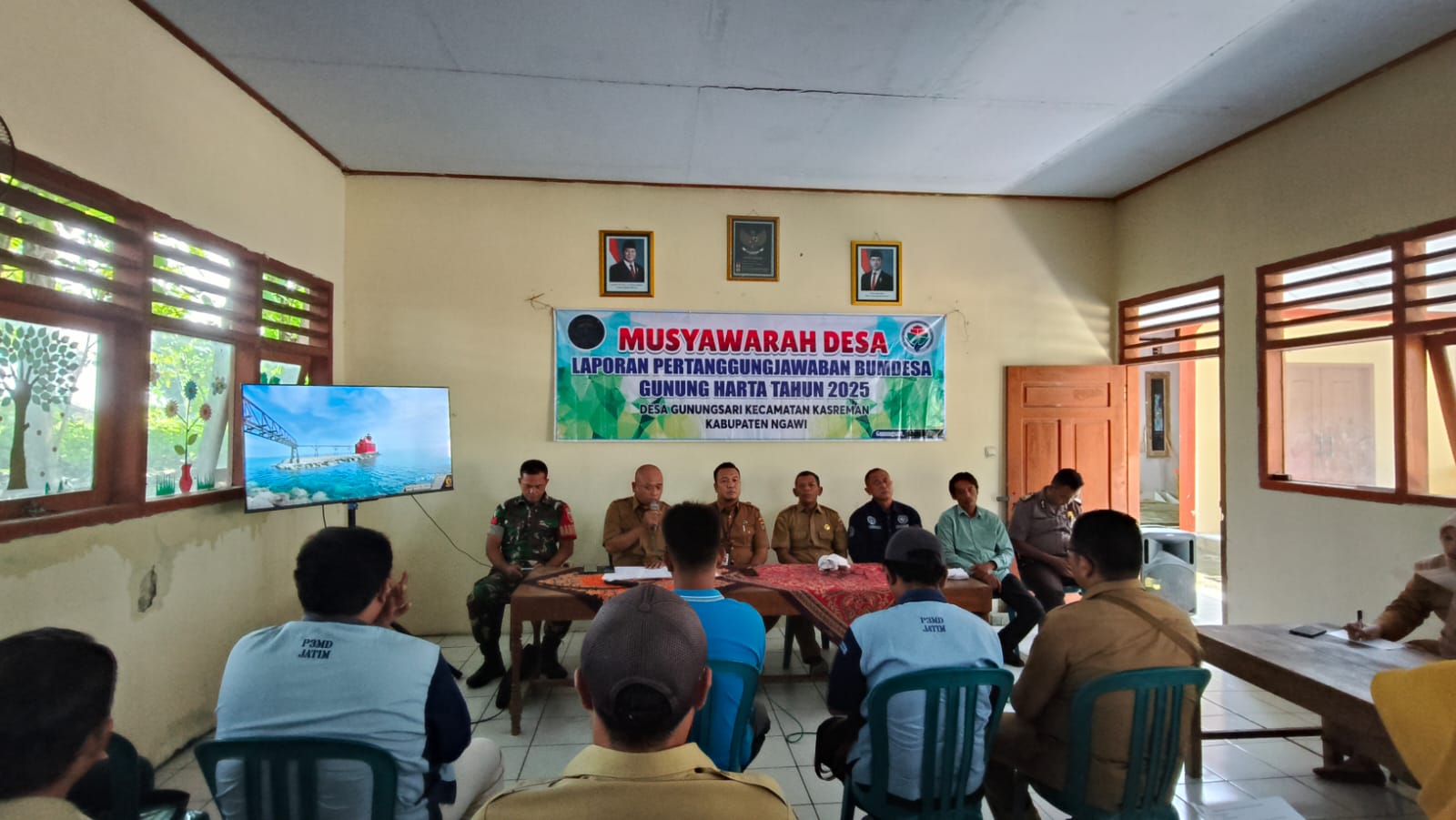 Posramil Kasreman Kodim 0805/Ngawi Kopka Feri Setiawan, menghadiri dan memantau secara langsung pelaksanaan Musyawarah Desa (Musdes) yang digelar di Ruang Pertemuan Kantor Desa Gunungsari, Kecamatan Kasreman, Kabupaten Ngawi. Senin (23/02/2026).