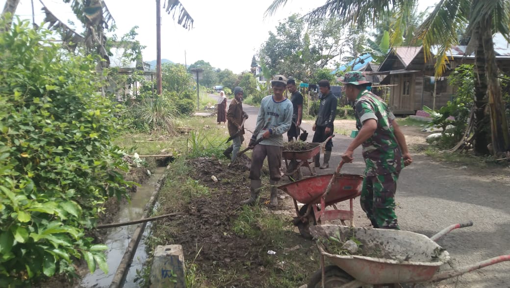 Danramil 1002-03/Haruyan Letda Inf Riyanto menyampaikan bahwa keterlibatan Babinsa dalam kegiatan gotong royong merupakan bagian dari tugas pembinaan teritorial sekaligus upaya mempererat hubungan antara TNI dan masyarakat.