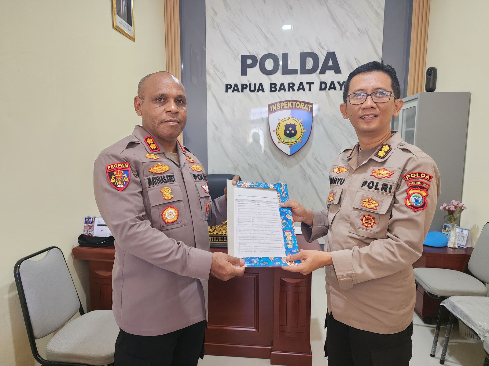 Kegiatan ini diikuti langsung oleh Kapolda Papua Barat Daya, Gatot Haribowo, S.IK, M.AP, bersama Wakapolda Papua Barat Daya, Semmy Ronny Thabaa, SE, serta 19 pejabat utama lainnya. Keikutsertaan pimpinan tertinggi dalam pemeriksaan ini menjadi bentuk keteladanan dan transparansi dalam upaya menjaga integritas institusi.
