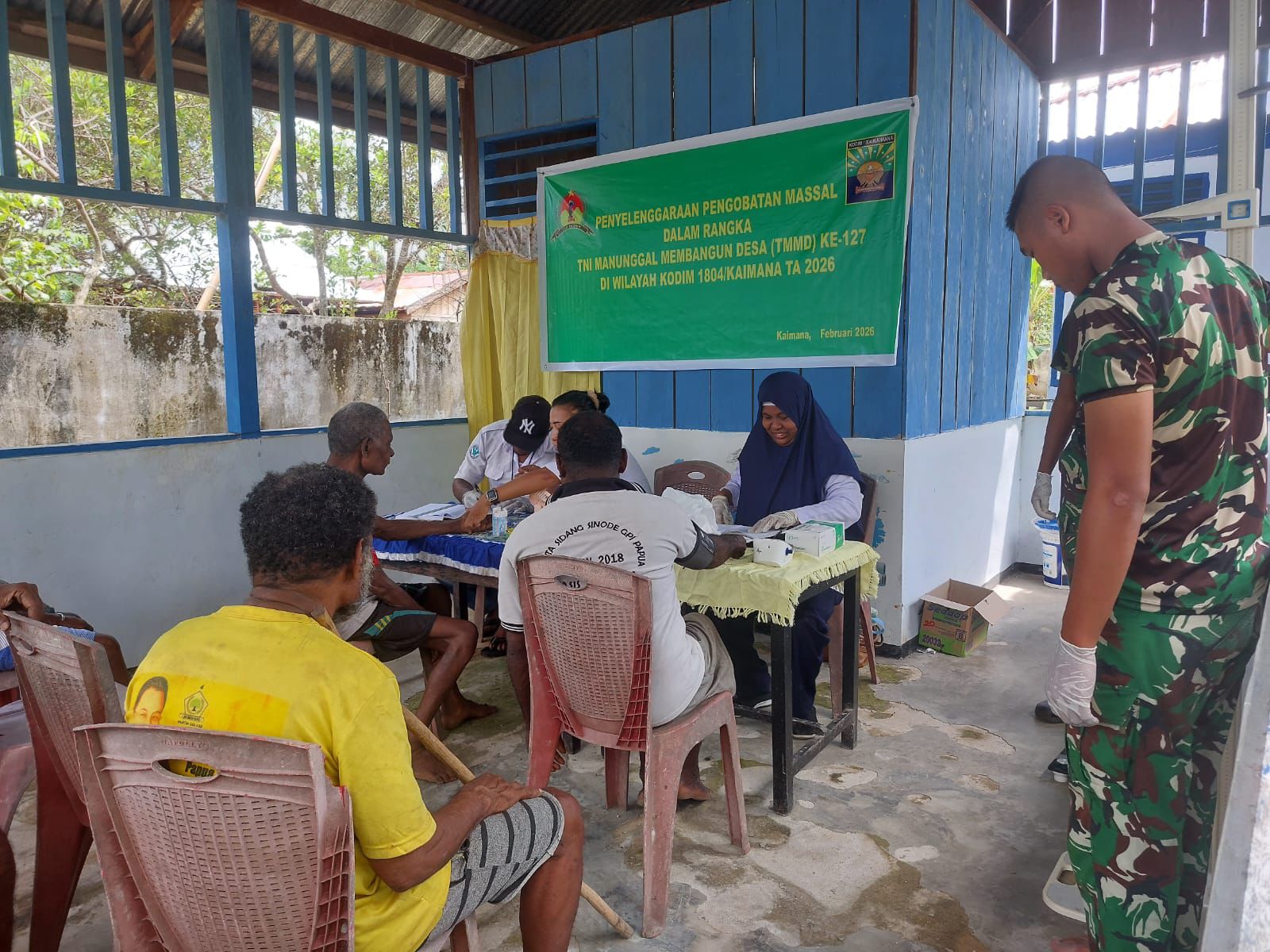KAIMANA PB,BUSERJATIM.COM GROUP– Tak hanya fokus pada pembangunan infrastruktur, program TNI Manunggal Membangun Desa (TMMD) ke-127 yang dilaksanakan oleh Kodim 1804/Kaimana jajaran Kodam XVIII/Kasuari juga menyentuh langsung kebutuhan dasar masyarakat melalui kegiatan non fisik, Kamis (27/02/2026) Satgas TMMD kembali melaksanakan kegiatan pengobatan massal di Kampung Sisir, Distrik Kaimana, Kabupaten Kaimana.