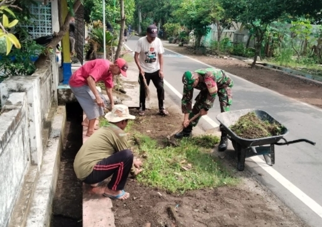 Kegiatan kerja bakti tersebut dilakukan sebagai wujud kepedulian terhadap kebersihan lingkungan sekaligus mempererat komunikasi antara Babinsa dan masyarakat di wilayah binaannya.