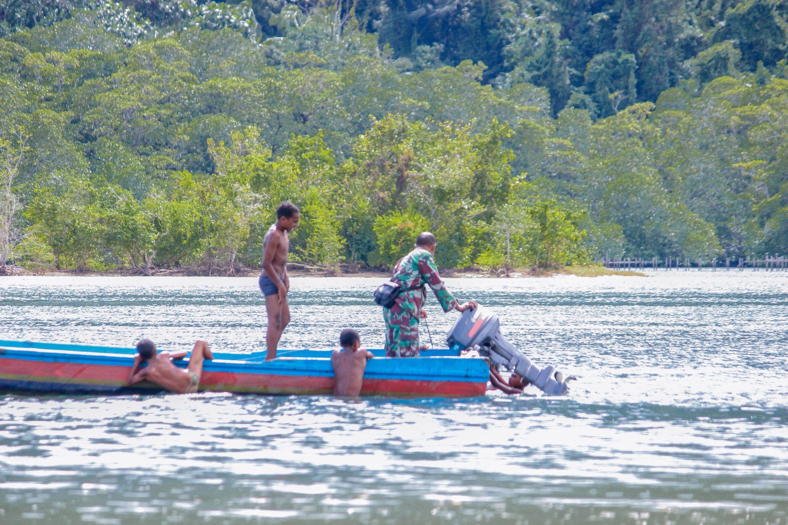 Tanpa ragu, anak-anak yang merupakan binaan Babinsa Kampung Sisir, Serda Reba, turut membantu proses pelepasan jangkar yang tersangkut. Dengan semangat gotong royong dan kepedulian tinggi, mereka bersama Babinsa berupaya mengatasi kendala tersebut hingga akhirnya jangkar berhasil dilepaskan.