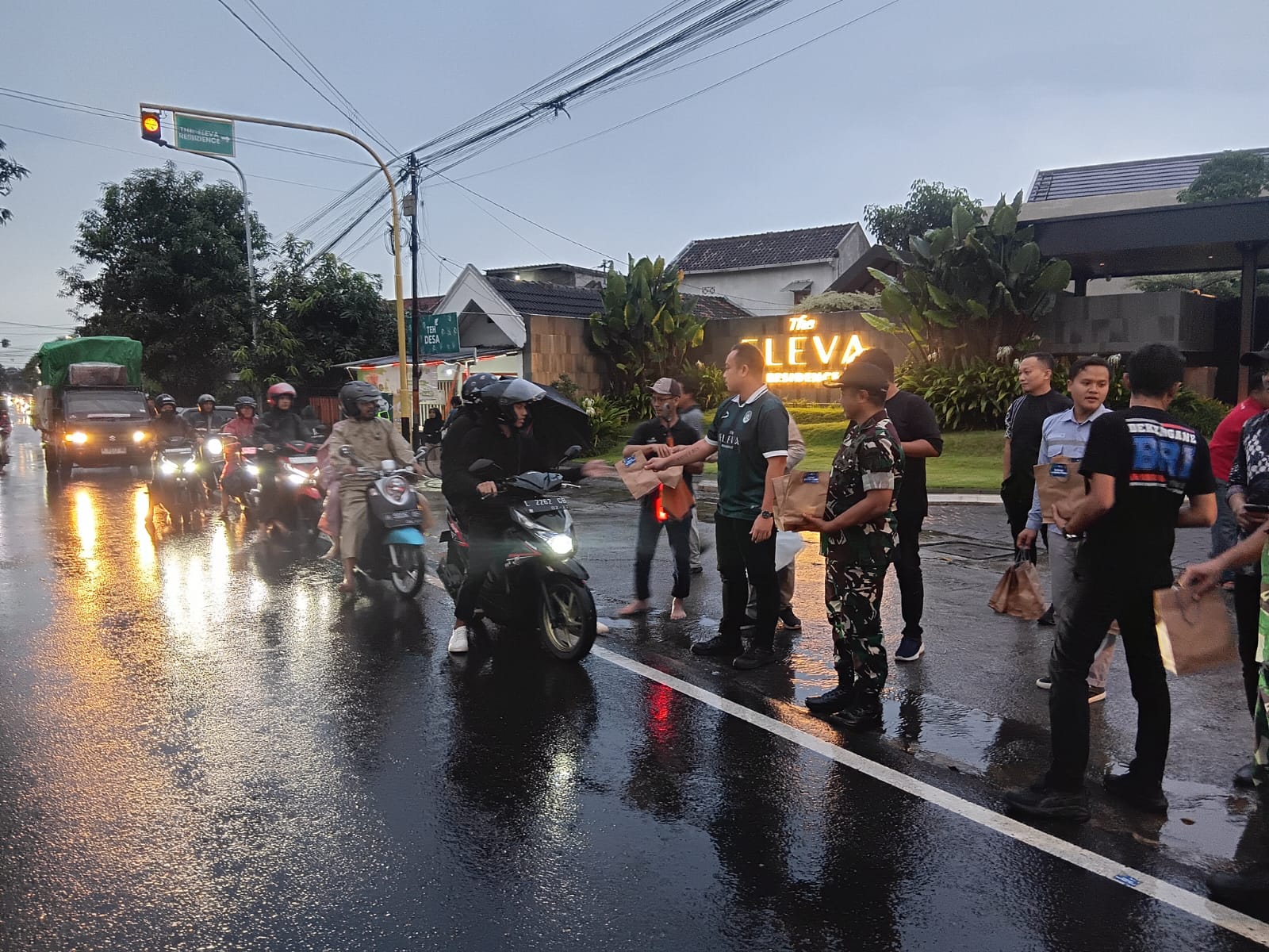 Para anggota Kodim 0803/Madiun bersama pihak The Eleva Residence membagikan takjil kepada pengendara roda dua, roda empat, serta masyarakat yang melintas di Jalan Raya Dungus. Selain itu, sejumlah paket sembako juga diserahkan kepada warga yang membutuhkan sebagai bentuk dukungan dan perhatian kepada masyarakat sekitar.