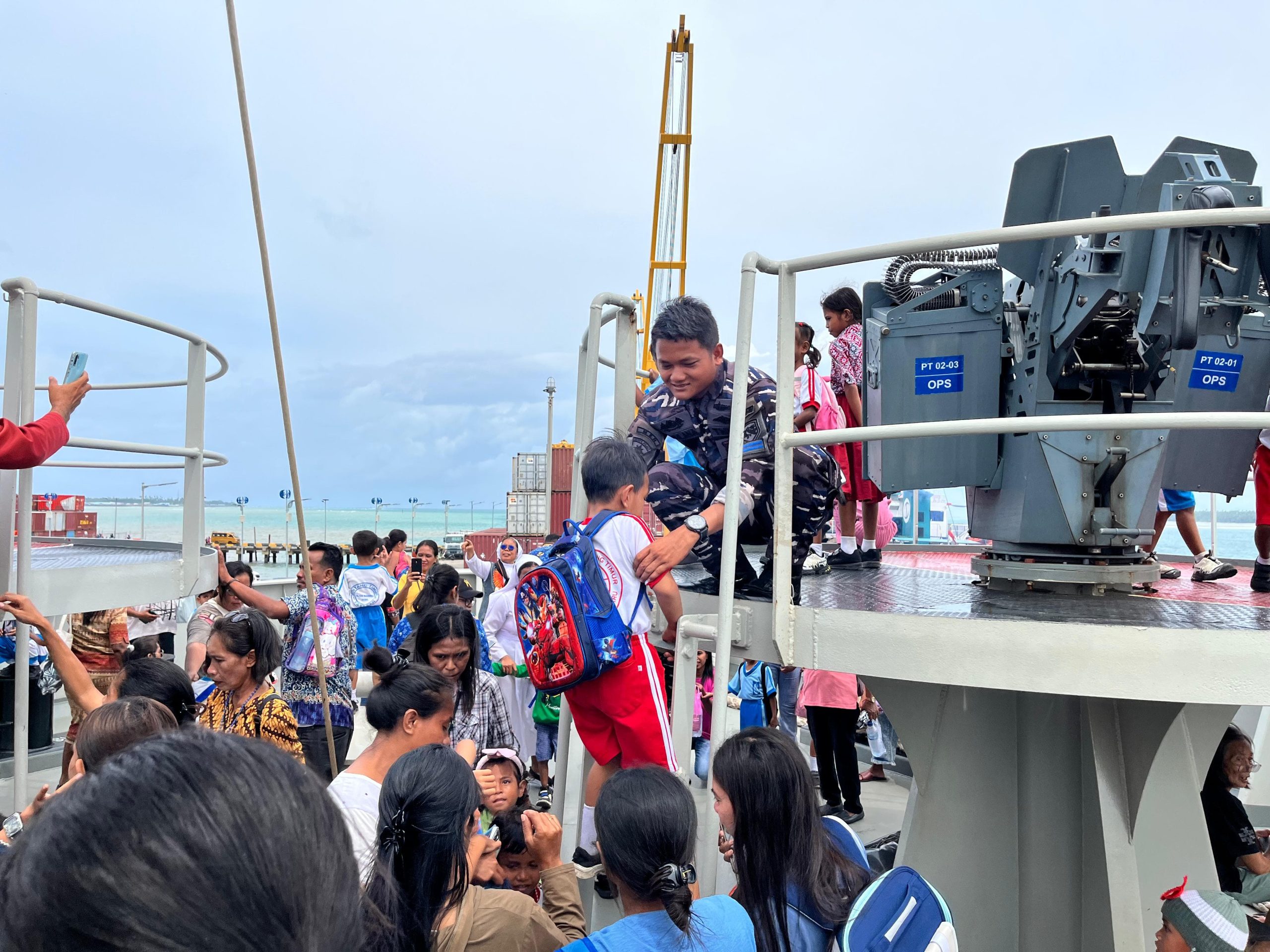 DOBO KEPULAUAN ARU, BUSERJATIM.COM GROUP (06/03/26) – Sorot mata penuh kekaguman terpancar dari wajah ratusan siswa-siswi sekolah di Kepulauan Aru saat menapakkan kaki di atas geladak Kapal Perang Republik Indonesia (KRI). Dalam rangkaian operasi Satgas Trisila 2026, TNI Angkatan Laut menggelar kegiatan Open Ship dan edukasi kebaharian yang dipusatkan di Pelabuhan Dobo, (05/03).
