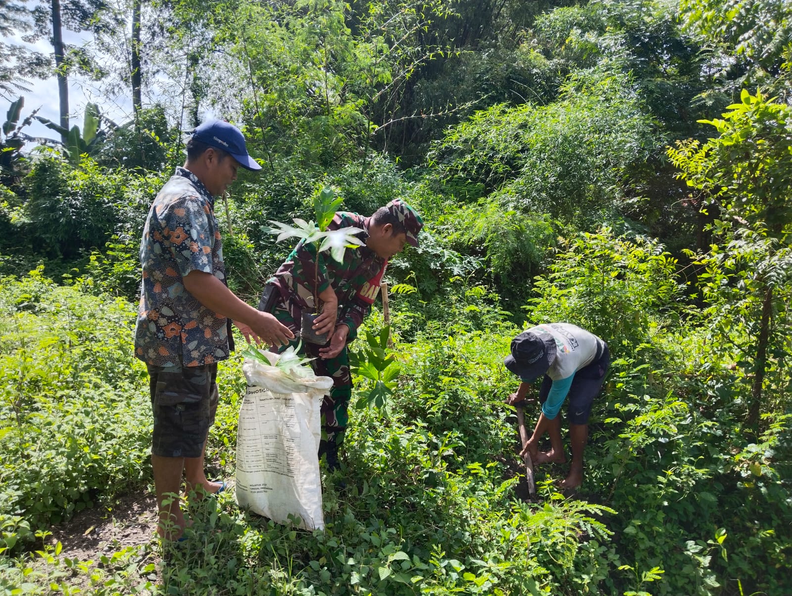 Hijaukan Lahan Desa, Babinsa Kebonsari Dampingi Warga Tanam Pohon Sukun