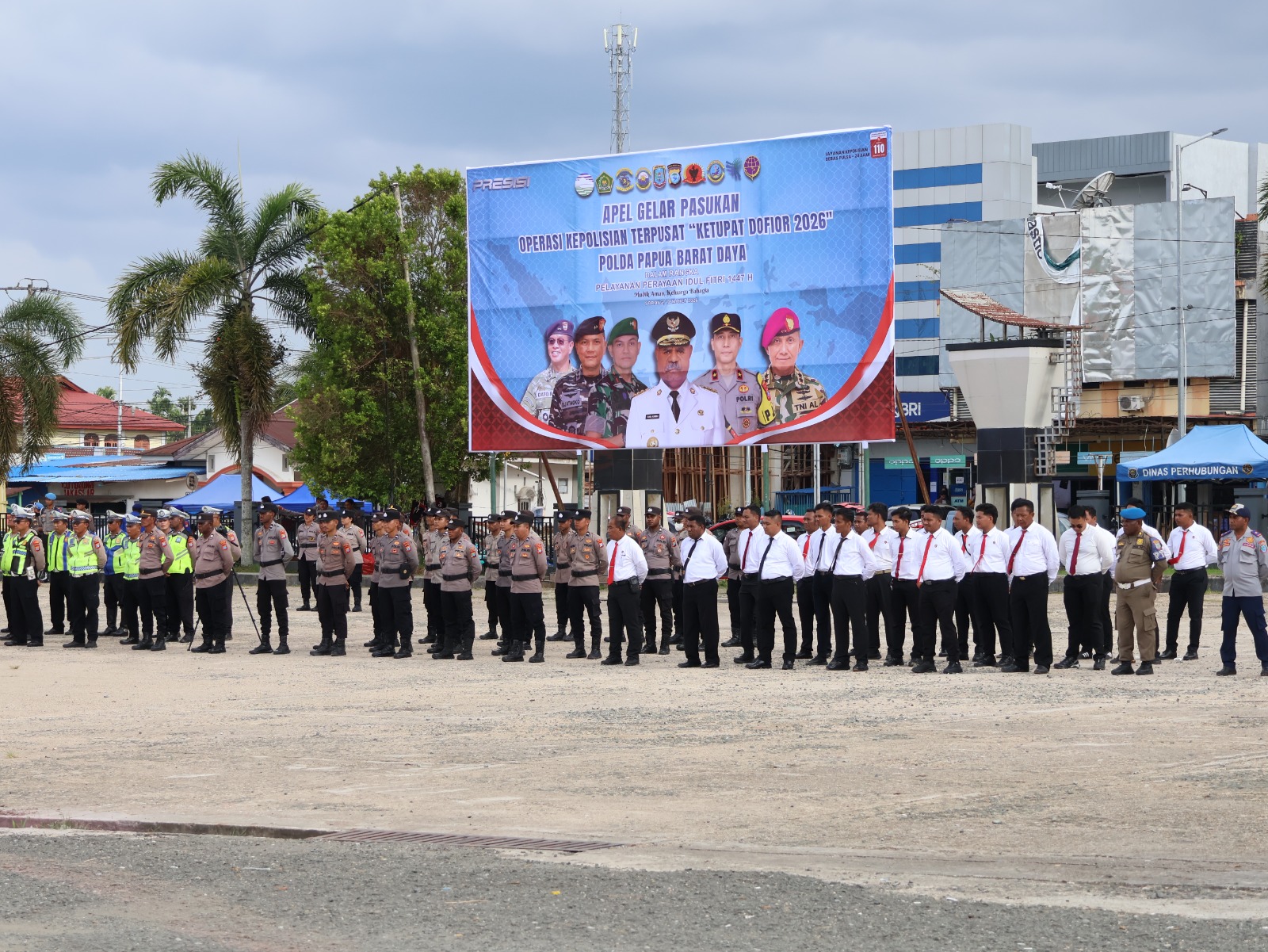 KOTA SORONG PBD, BUSERJATIM.COM GROUP – Polda Papua Barat Daya Menggelar Apel Gelar Pasukan Operasi Kepolisian Terpusat (KETUPAT) Dofior 2026 Yang Dipimpin Langsung Kapolda Papua Barat Daya Brigjen Pol. Gatot Haribowo, Di Alun Alun Kabupaten Sorong, Aimas.