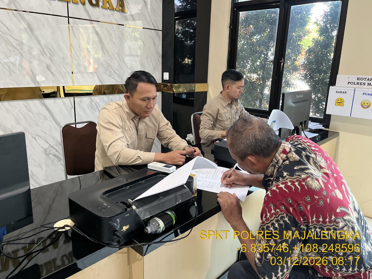 Majalengka, Polres Majalengka terus berkomitmen untuk memberikan pelayanan publik yang prima, transparan, dan tanpa pungutan liar kepada seluruh lapisan masyarakat. Hal ini terlihat dalam aktivitas pelayanan di Sentra Pelayanan Kepolisian Terpadu (SPKT) Polres Majalengka pada Kamis (12/3/2026), di mana petugas dengan sigap membantu warga yang membutuhkan surat keterangan kehilangan dokumen penting.