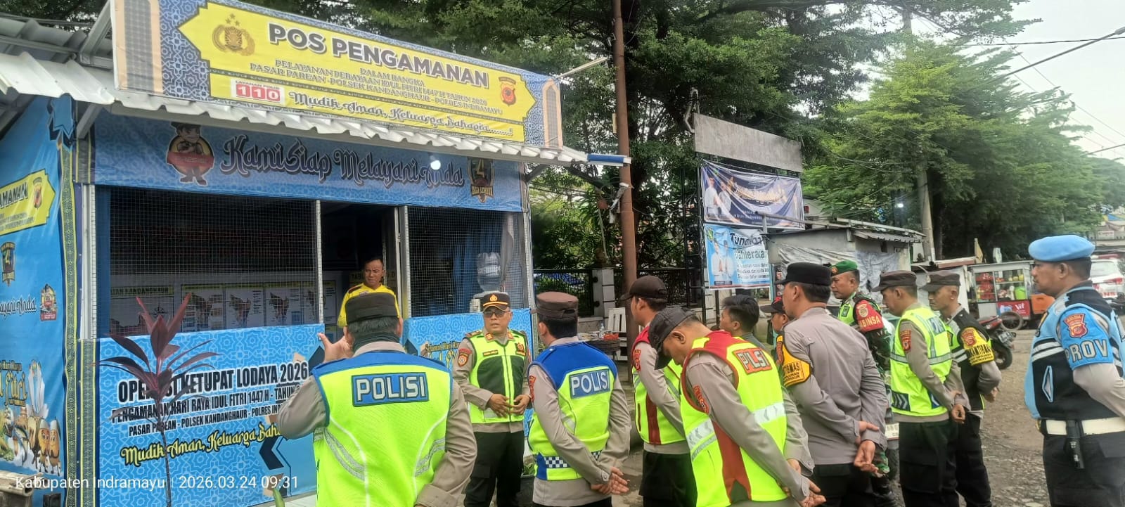 INDRAMAYU – Menghadapi dinamika arus lalu lintas pasca Lebaran Idul Fitri 1447 H, petugas gabungan di Pos Pam Pasar Parean, Kecamatan Kandanghaur, Kabupaten Indramayu, menggelar apel kesiapsiagaan Selasa (24/3/2026).