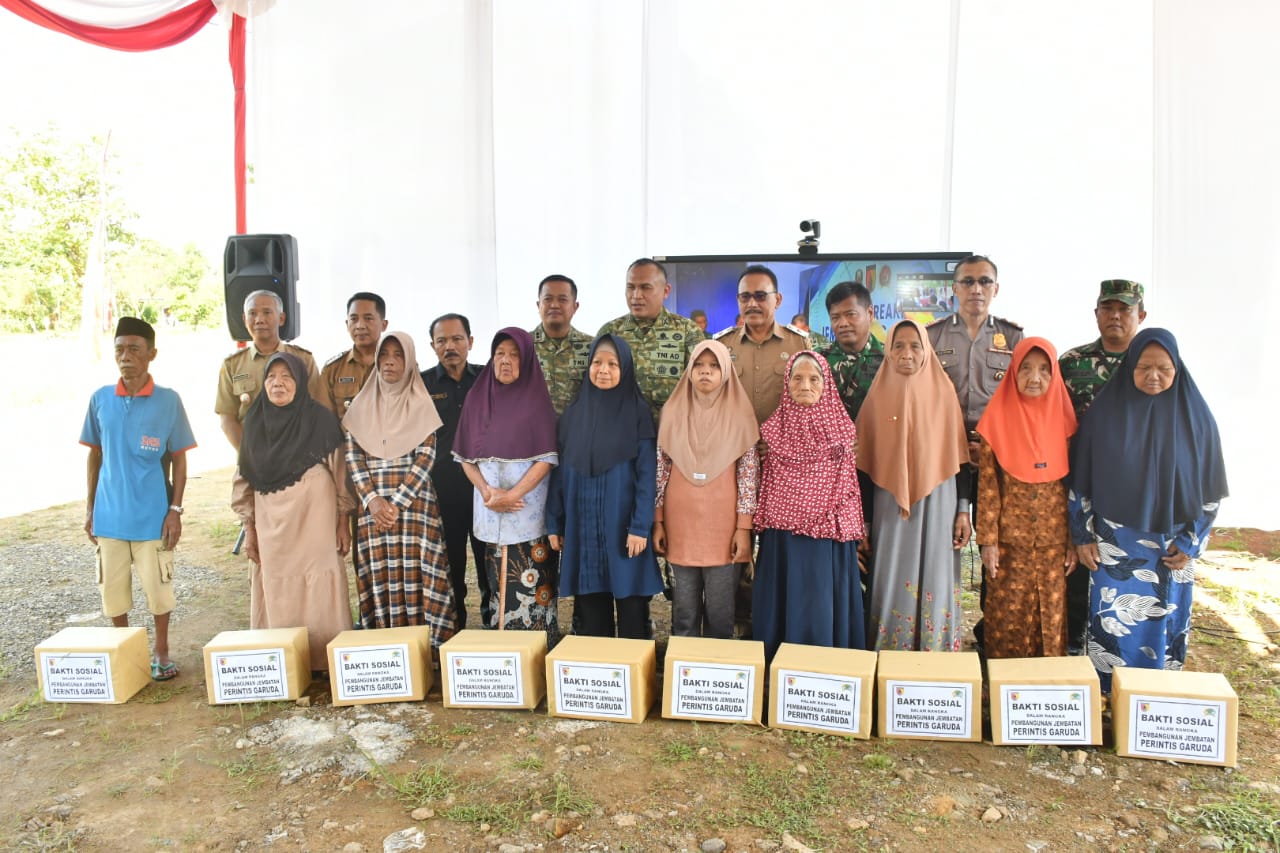 Ground breaking pembangunan jembatan Perintis Garuda di wilayah Kodim 0802/Ponorogo juga diisi kegiatan bakti sosial (Baksos) pemberian sembako kepada warga sekitar lokasi proyek pembangunan jembatan Perintis Garuda yang diserahkan langsung oleh Danrem 081/Dsj, Dandim 0802/Ponorogo serta tamu undangan kepada warga penerima baksos.(MdC0802)