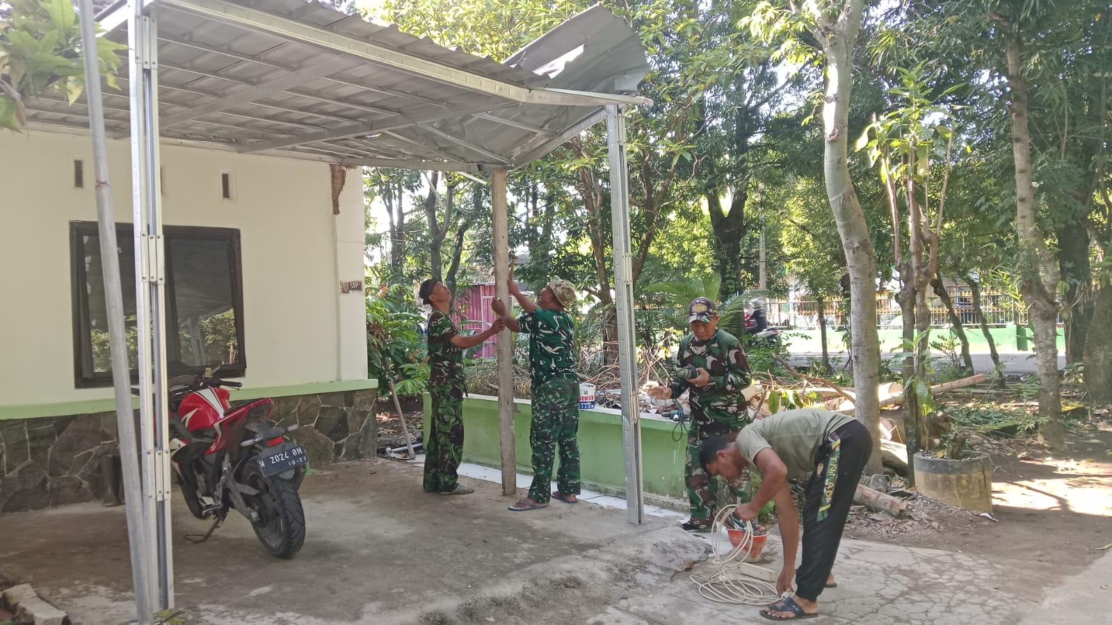 Demikian pula dengan Serda Basori yang sehari hari bertugas di Koramil Tipe B 0802/06 Sukorejo dan tinggal di Rumah Dinas juga mengalami musibah berupa rumah bagian depan tertimpa pohon tumbang.