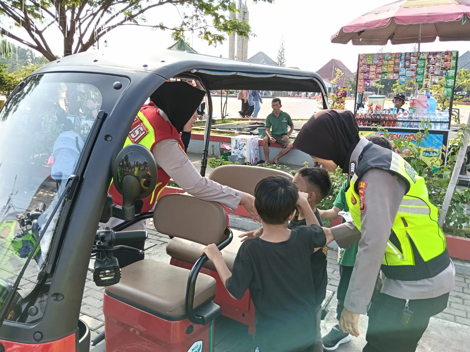 Pantauan di lokasi, para Polwan tampak aktif berinteraksi dengan berbagai lapisan masyarakat. Mulai dari berbincang dengan lansia yang tengah beristirahat di trotoar, hingga menyapa anak-anak yang bermain di area Alun-alun.