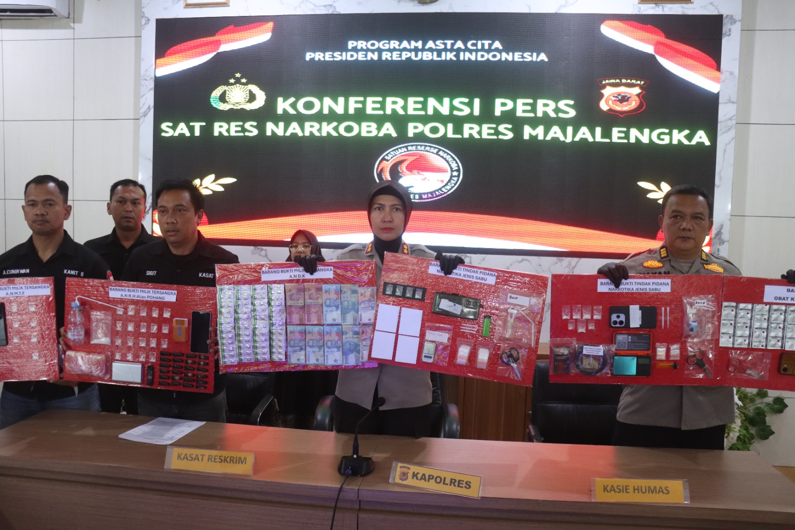 Dalam sebuah konferensi pers yang dipimpin langsung oleh Kapolres Majalengka AKBP Rita Suwadi, S.H., S.I.K., M.M. di Aula Sindangkasih Mapolres Majalengka, pihak kepolisian memaparkan keberhasilan pengungkapan sejumlah kasus narkoba selama periode Maret hingga April 2026, Kamis (16/4/2026).