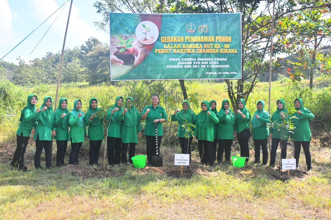 MADIUN, BUSERJATIM.COM GROUP – Dalam rangka memperingati Hari Ulang Tahun (HUT) ke-80 dengan tema Delapan Dekade Berkarya, Persit Kartika Chandra Kirana Cabang XVII Kodim 0803/Madiun menggelar kegiatan penanaman pohon sebagai wujud kepedulian terhadap lingkungan.