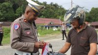 Jelang HUT RI ke-80, Satlantas Polres Maybrat Bagikan Bendera Merah Putih kepada Pengendara di Jalan