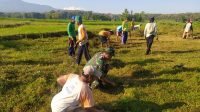 Aksi Gotong Royong Babinsa dan Warga Bersihkan Lapangan Desa Mruwak.