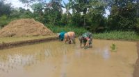 Babinsa Morang Turun ke Sawah Dampingi Petani Tanam Padi