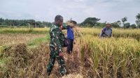 Turun ke Sawah, Babinsa Banaran Dampingi Petani Panen Padi