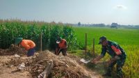 Aktif Bantu Warga, Babinsa Kodim Ponorogo Ikut Kerja Bakti Bangun Talud Irigasi