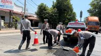Peduli Keselamatan Masyarakat Polantas Polres Situbondo Tambal Jalan Berlubang Cegah Laka