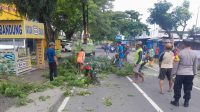 Peduli Keselamatan Warga, Babinsa Koramil 01/Ngawi dan Bhabinkamtibmas Pangkas Ranting Pohon Di Bahu Jalan