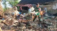 Babinsa Koramil Ngrambe Bersama Warga Gotong Royong Bersihkan Rumah Warga Yang Roboh
